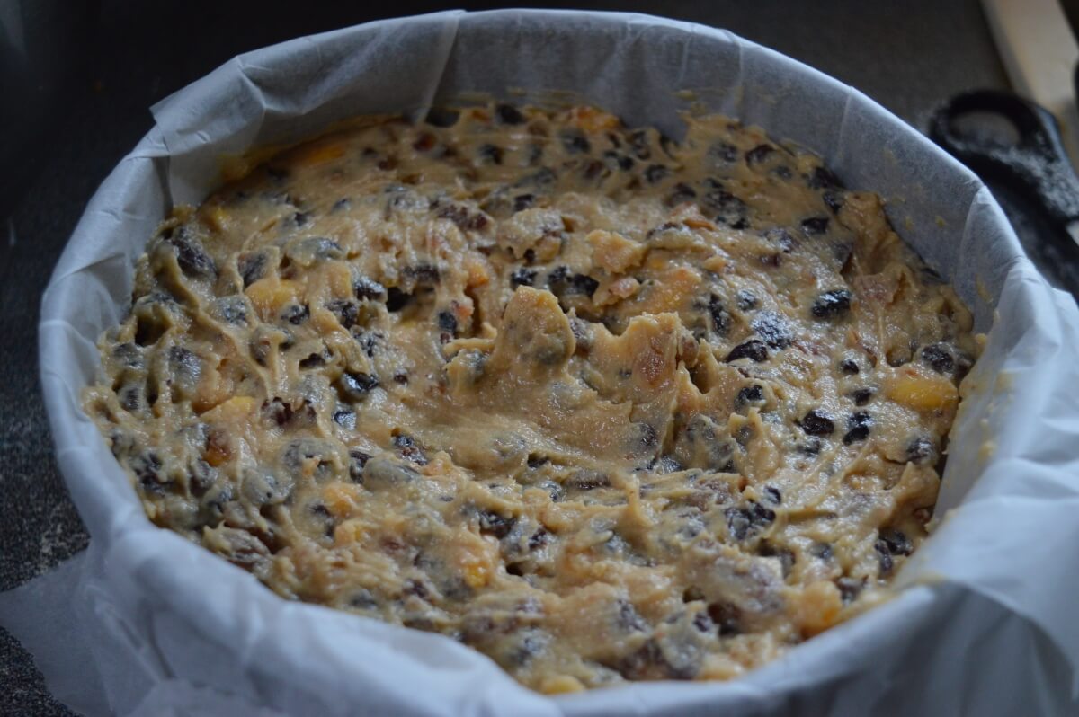 A good Christmas cake needs protection during its long, slow bake. My gran always wrapped the outside of the tin with newspaper tied with string. You can still do this with brown paper or baking parchment. It keeps the edges from burning and helps the cake bake evenly.