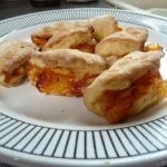 Use a round cutter to cut out circles in the dough, add some cheese mixture to the centre and fold the circle in half and press together.