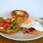 Shred the lettuce and chop the tomatoes and add to the bagel