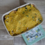 Place in a casserole dish and layer the chopped hard boiled eggs on top.