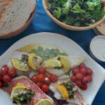 Red snapper with oregano, olives and tahini
