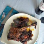 Chop 2 garlic cloves into slivers, cut slits in the leg of lamb and insert the garlic and rosemary.